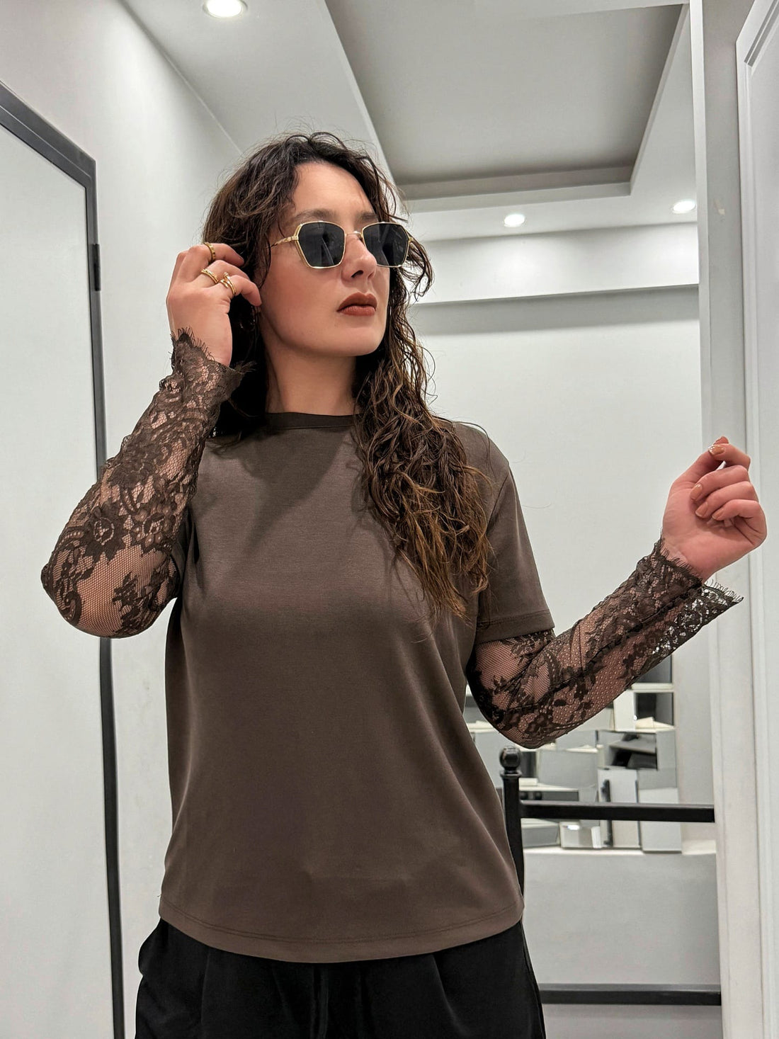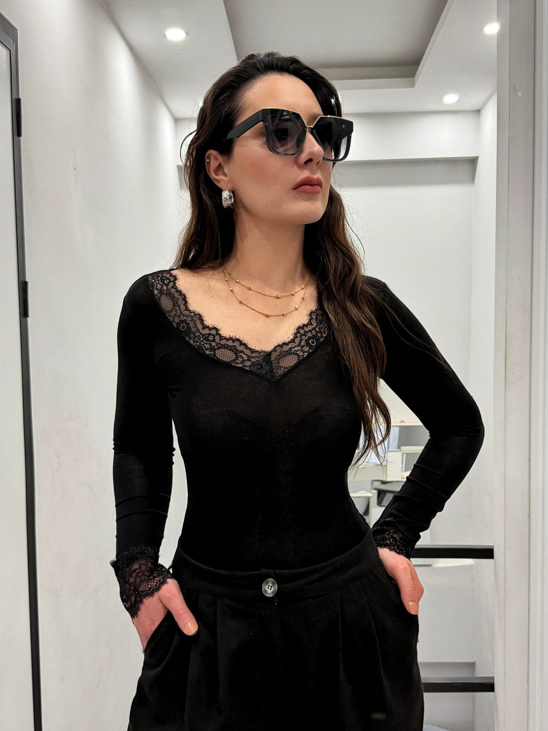 DANTEL DETAYLI TÜL KOLLU BLUZ