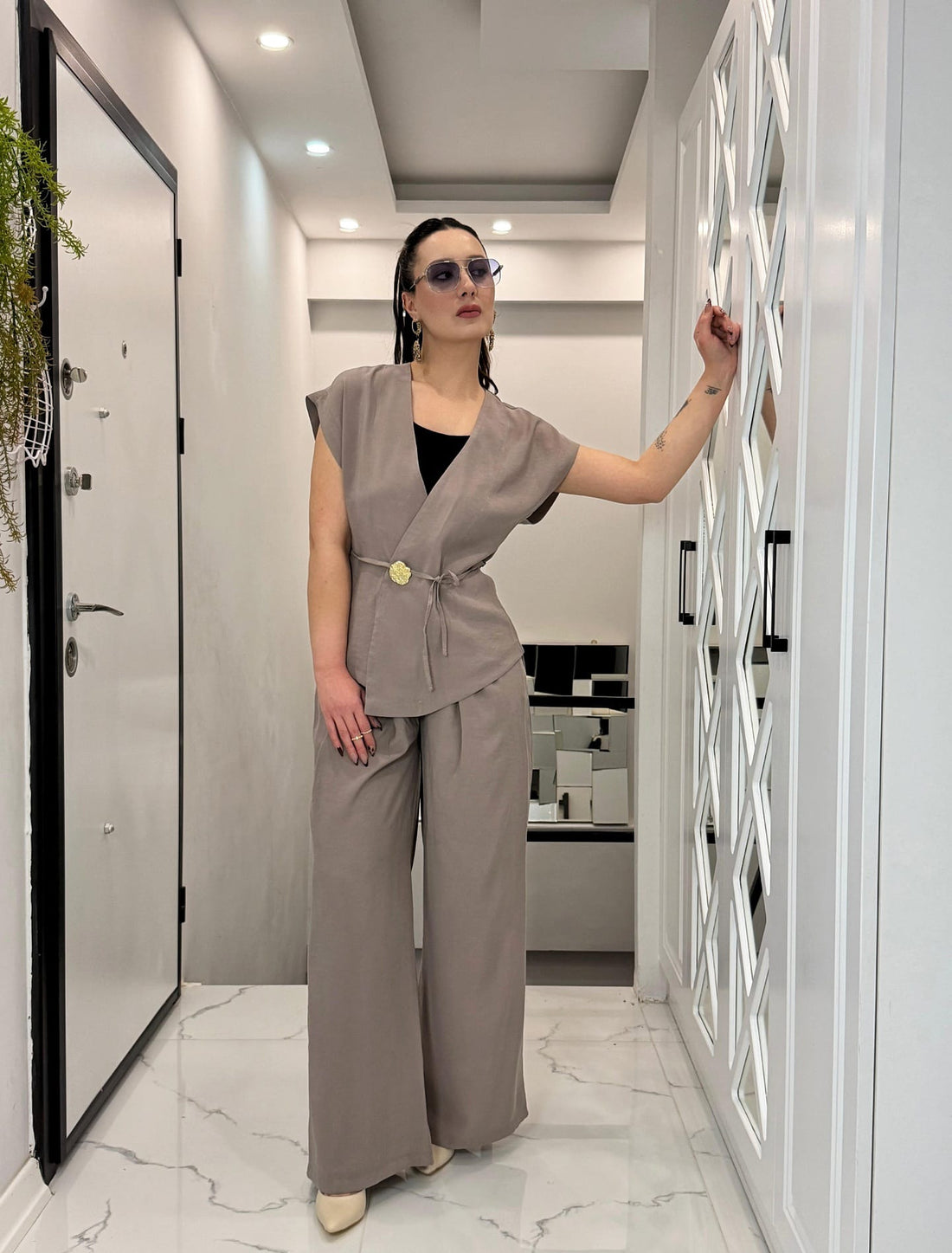 İKİLİ BLUZ TAKIM HAMUR DOKU