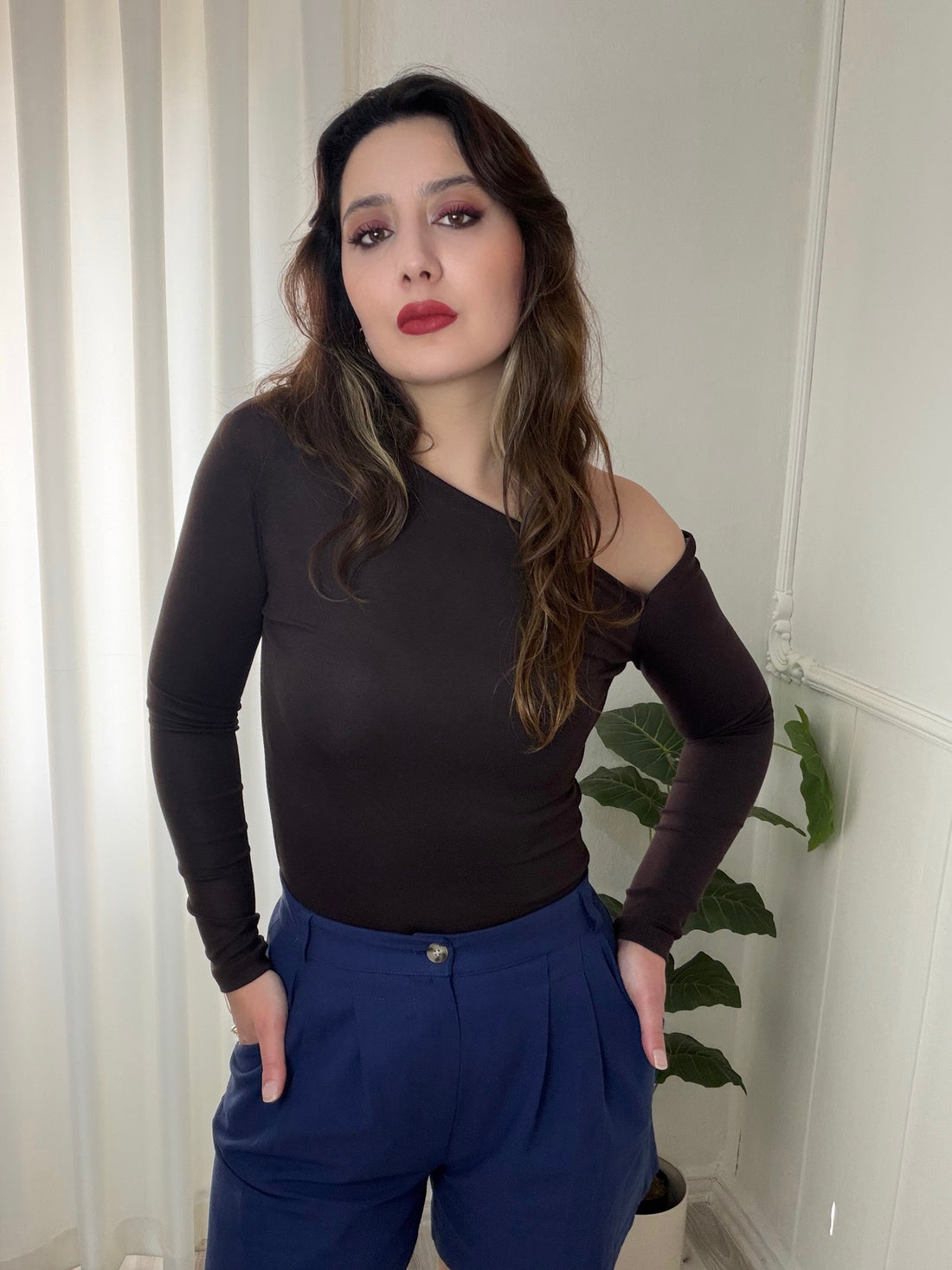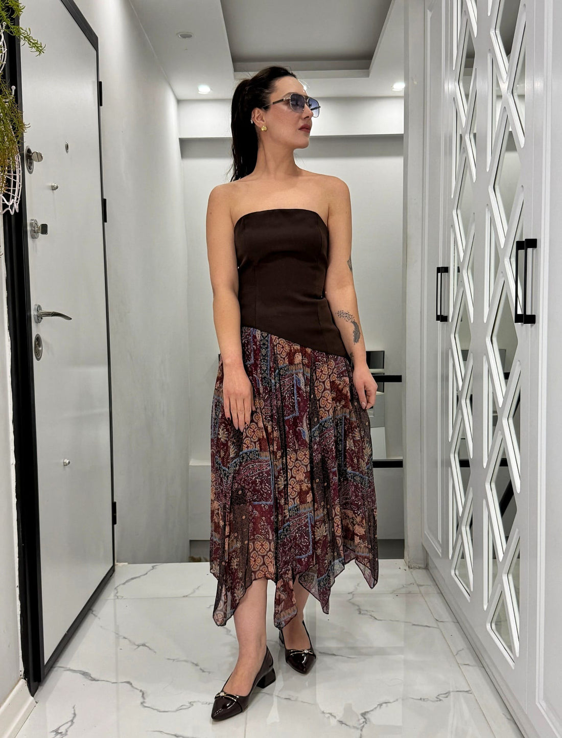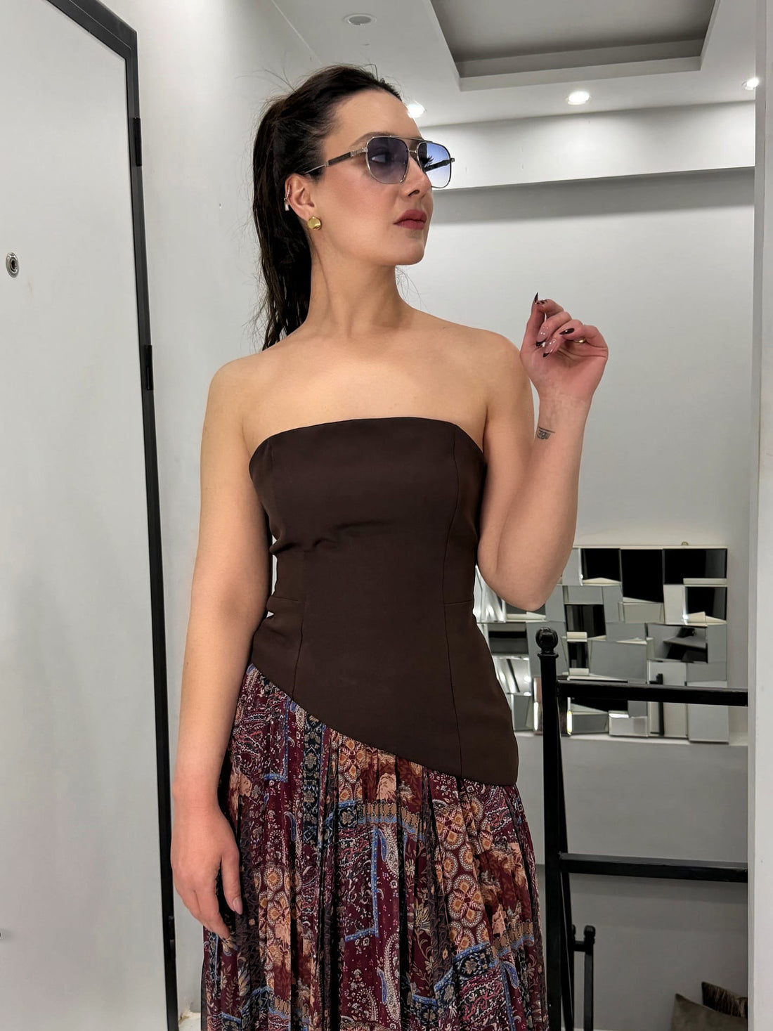 ASİMETRİK KESİM STRAPLEZ TOK KUMAŞ BLUZ