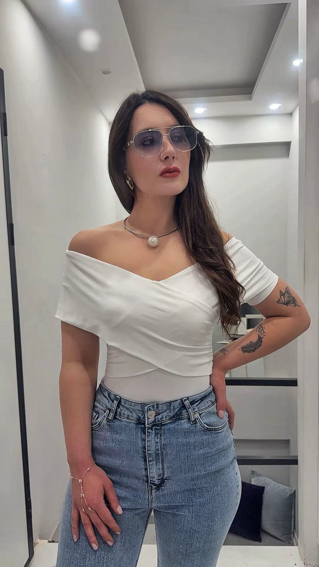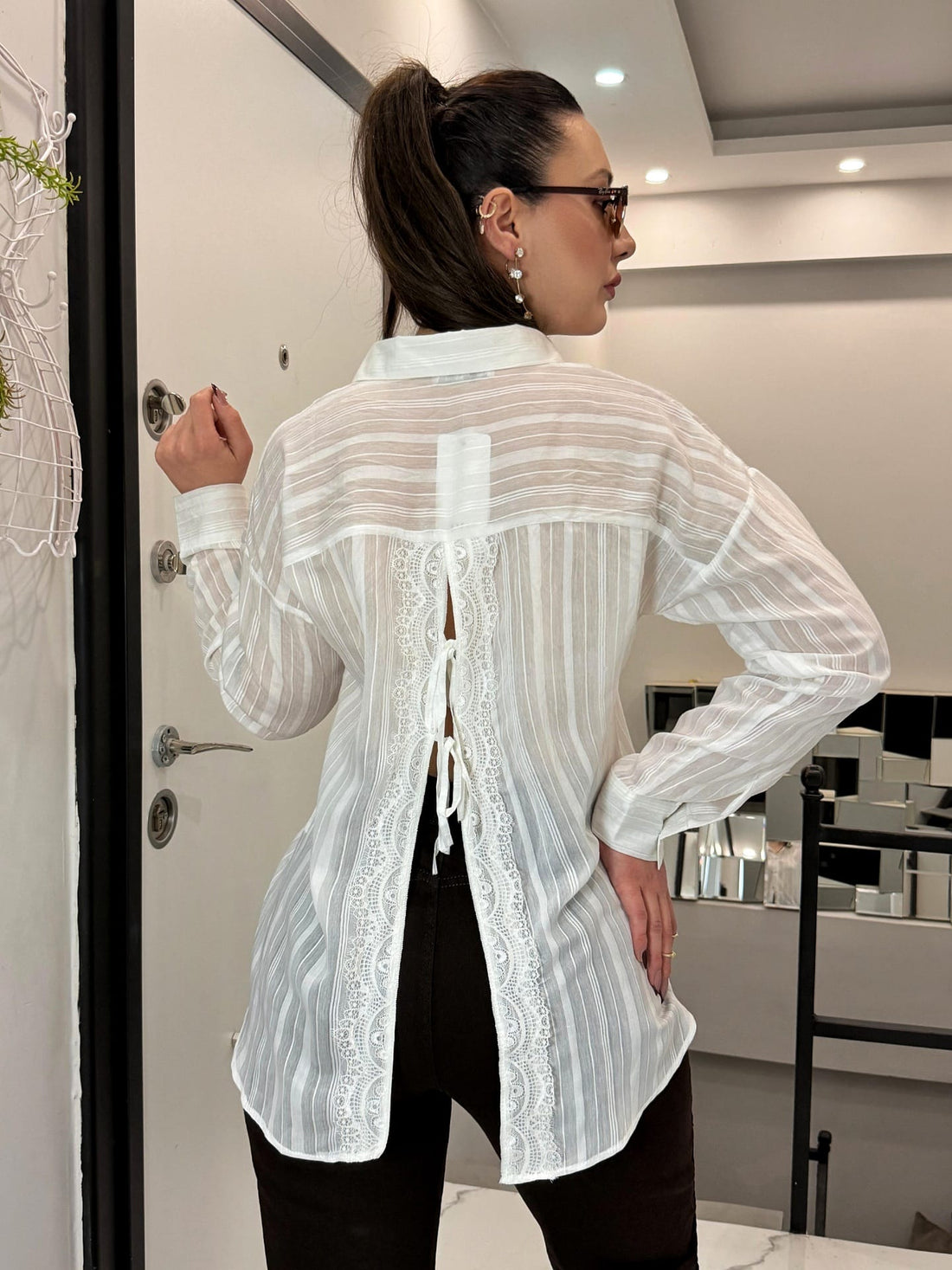 BEYAZ SIRT DEKOLTELİ DANTEL DETAYLI GÖMLEK
