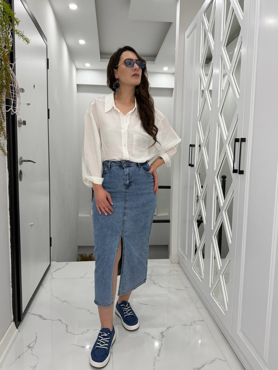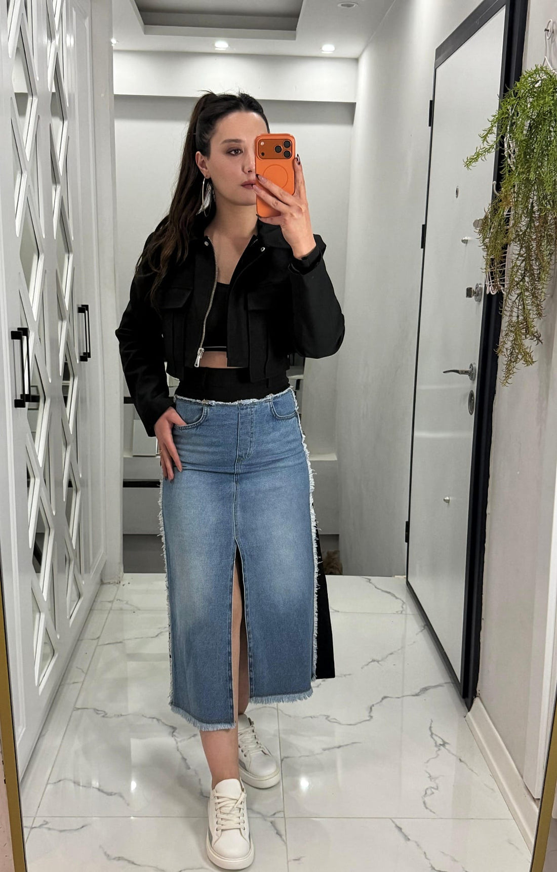 YIRTMAÇ DETAYLI DENİM KOT ETEK