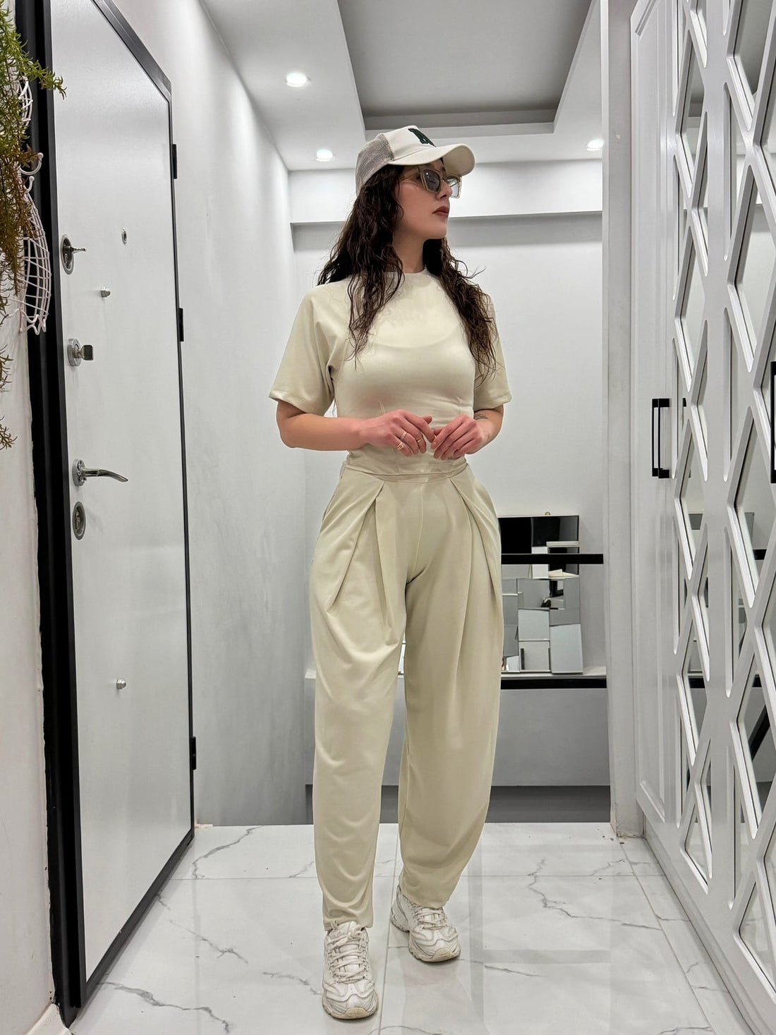 ÇAĞLA YEŞİLİ & KREM LİKRALI TAKIM