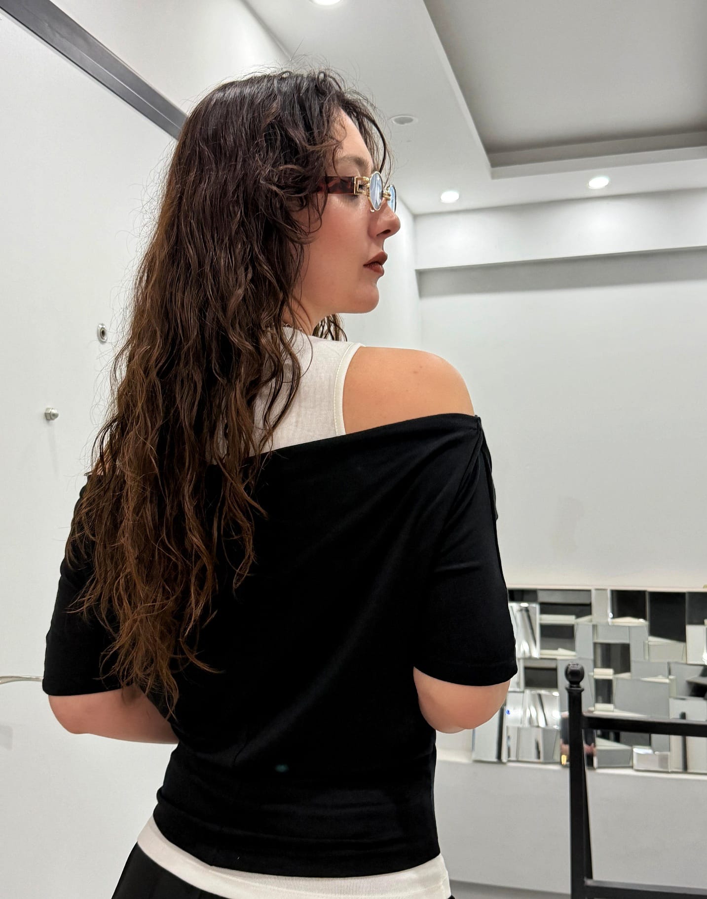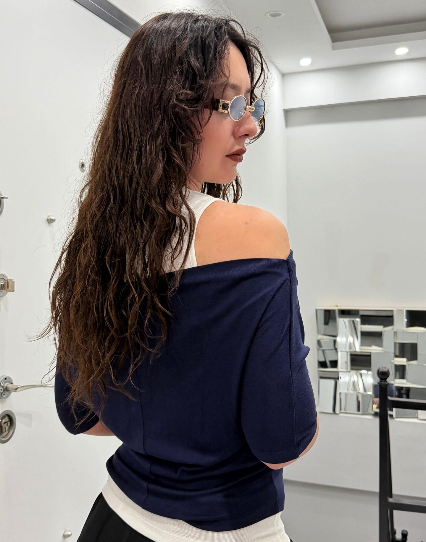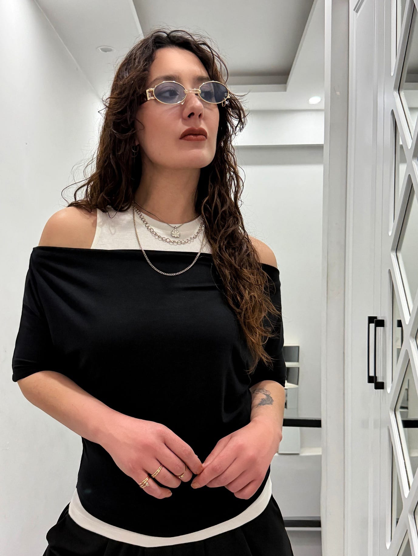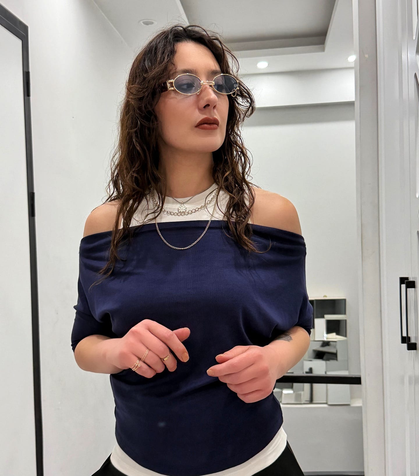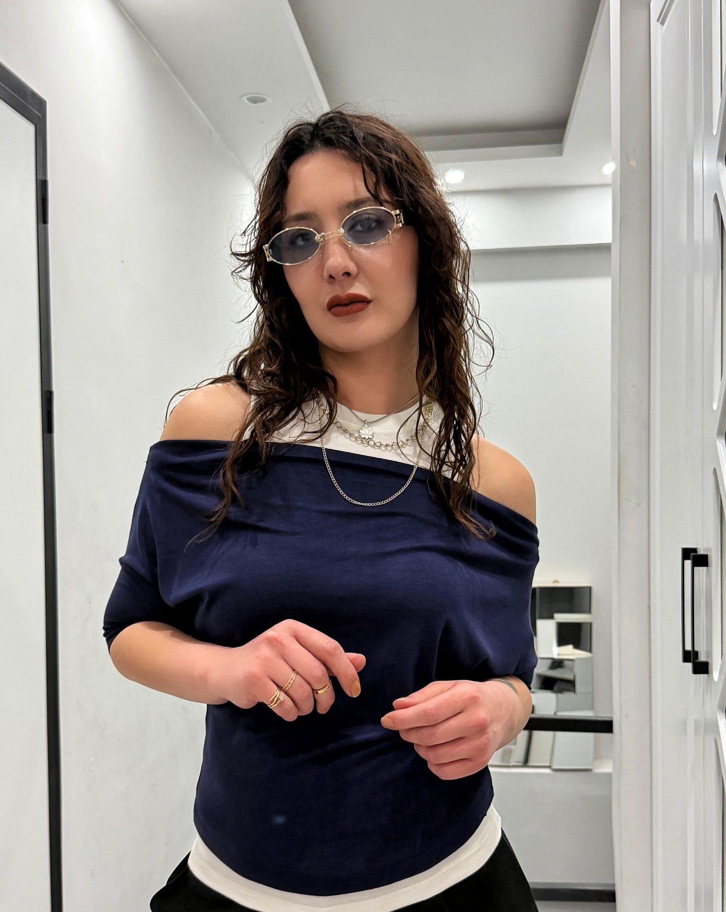 Modern ve şık tasarımıyla öne çıkan bu ikili bluz takım, katmanlı görünümü sayesinde kombinlerinize farklı bir hava katar. Omuz dekolteli üst ve iç bluz uyumu ile hem günlük hem de özel anlarda rahatlıkla tercih edebilirsiniz.